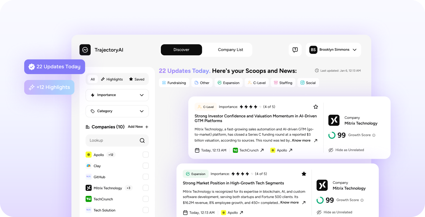 TrajectoryAI helps you cut through the noise, showing what actually matters inside the companies you follow. In this article, we’ll break down the value TrajectoryAI delivers to different teams across a business. Without further ado, let’s dive in.